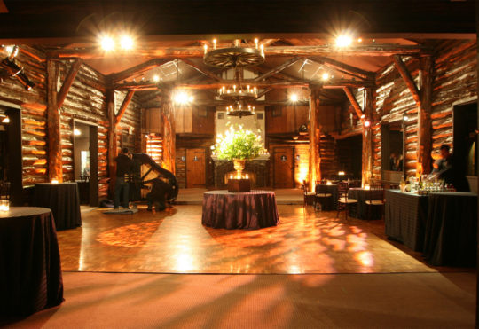 Shortly after, we'll enjoy dinner and dancing inside the beautiful and cozy Log Cabin.